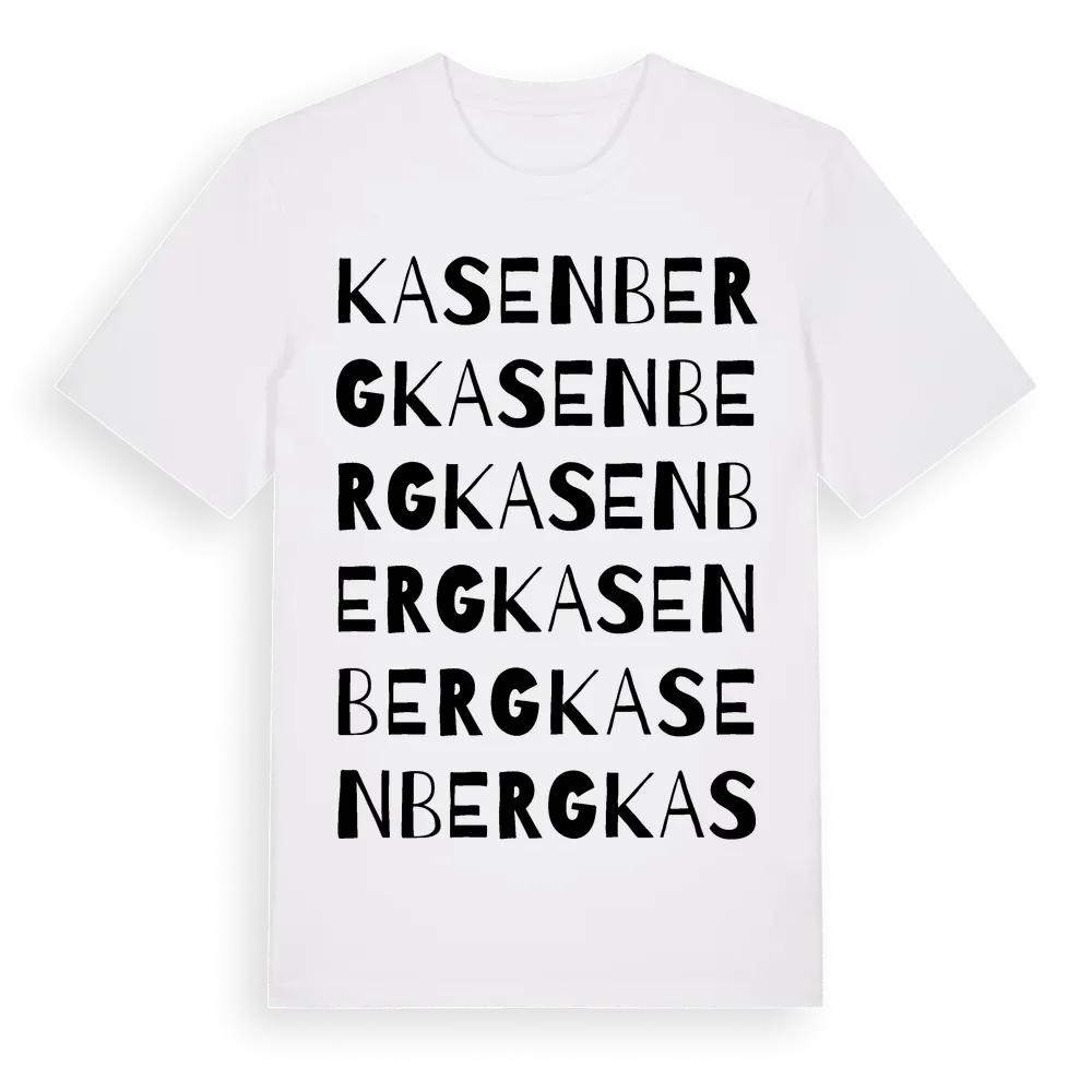 Kasenberg ordlek t-shirt är inspirerad av byn Kasenberg i Västra Götalands län, Sverige. Tröjan är designad för dig som har en speciell koppling till platsen – oavsett om du bor här, har rötterna här eller bara älskar Kasenberg.