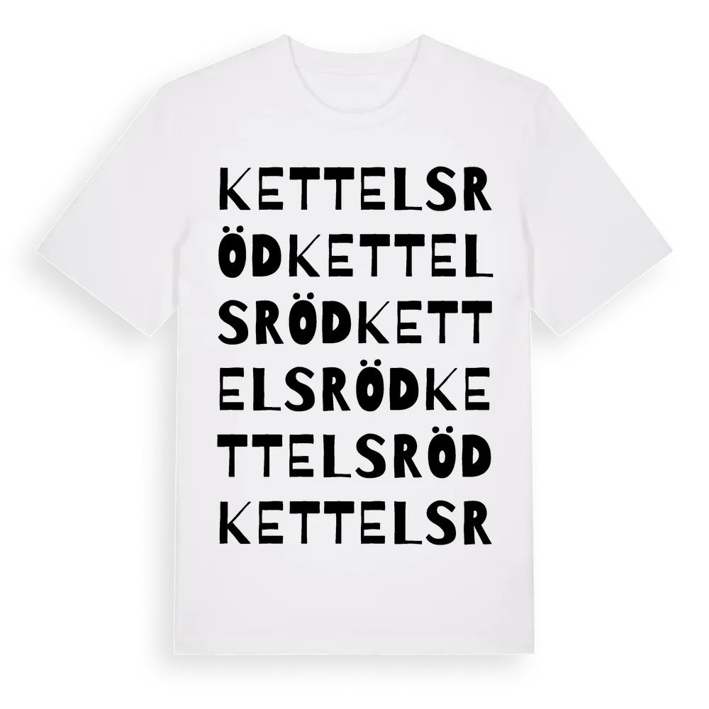 Kettelsröd ordlek t-shirt är inspirerad av byn Kettelsröd i Västra Götalands län, Sverige. Tröjan är designad för dig som har en speciell koppling till platsen – oavsett om du bor här, har rötterna här eller bara älskar Kettelsröd.