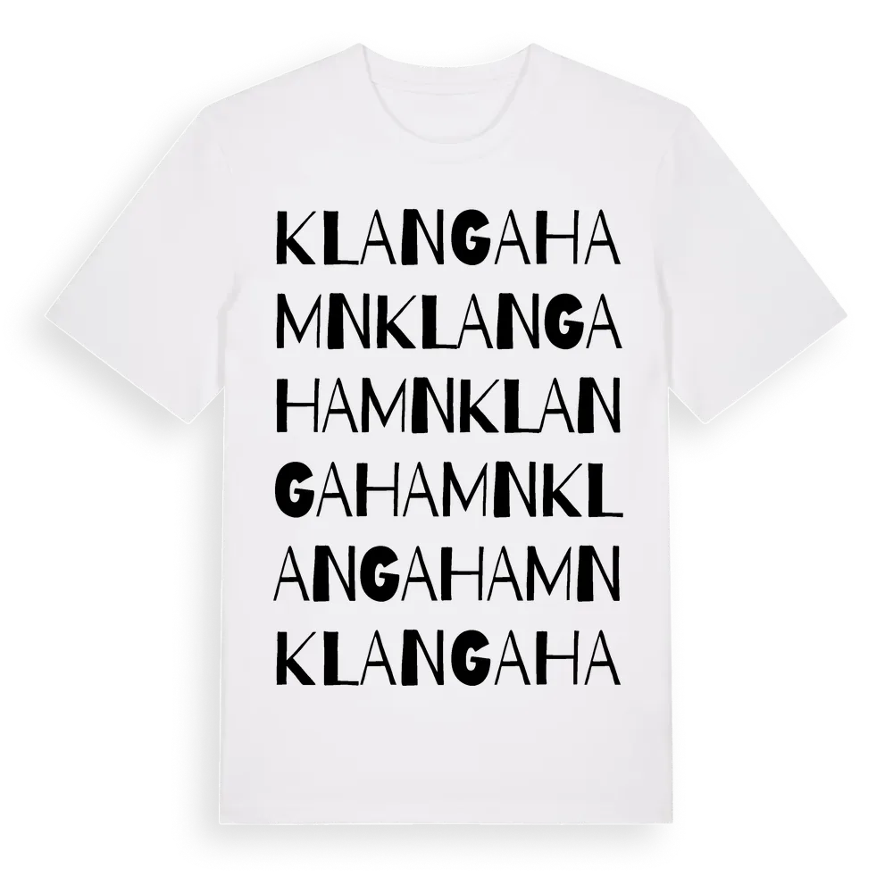 Klangahamn ordlek t-shirt är inspirerad av Klangahamn i Västra Götalands län, Sverige. Tröjan är designad för dig som har en speciell koppling till platsen – oavsett om du bor här, har rötterna här eller bara älskar Klangahamn.