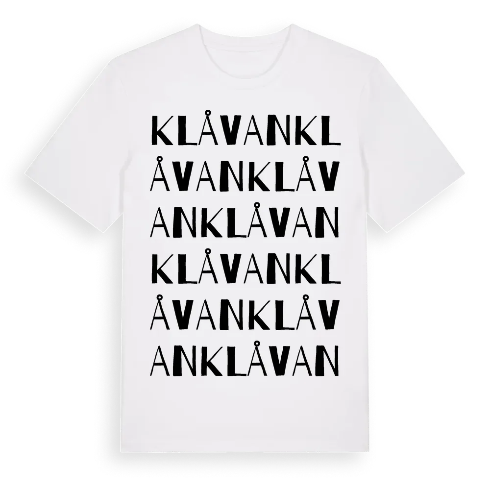 Klåvan ordlek t-shirt är inspirerad av Klåvan i Västra Götalands län, Sverige. Tröjan är designad för dig som har en speciell koppling till platsen – oavsett om du bor här, har rötterna här eller bara älskar Klåvan.