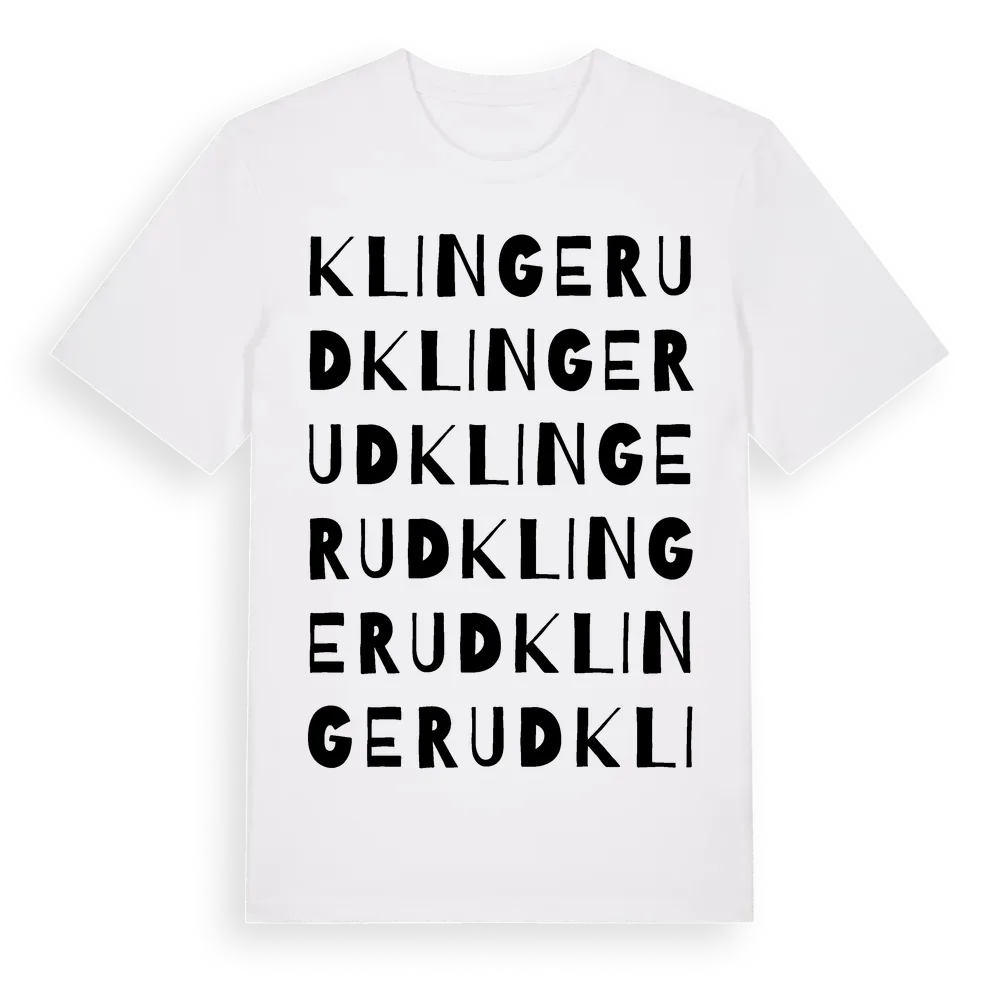 En ordlek byggd på Klingeruds namn. Subtilt och klurig – ett motiv som bara de som verkligen känner platsen fullt ut förstår. Premium bomull, unisex – från Klingerud i Västra Götalands län.