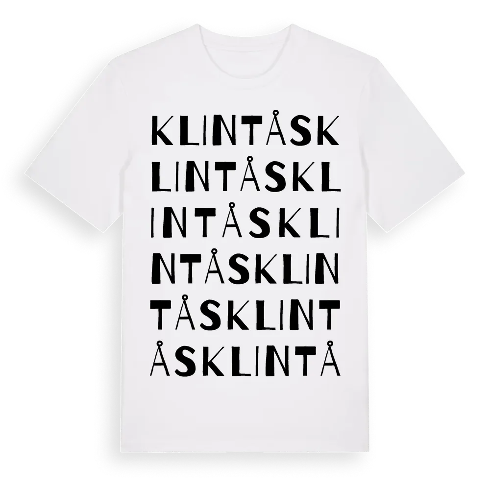 En ordlek byggd på Klintåss namn. Subtilt och klurig – ett motiv som bara de som verkligen känner platsen fullt ut förstår. Premium bomull, unisex – från Klintås i Västra Götalands län.
