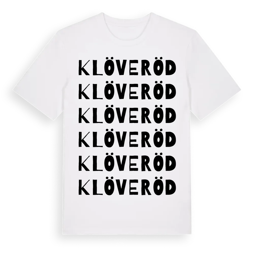 Klöveröd ordlek t-shirt är inspirerad av Klöveröd i Västra Götalands län, Sverige. Tröjan är designad för dig som har en speciell koppling till platsen – oavsett om du bor här, har rötterna här eller bara älskar Klöveröd.