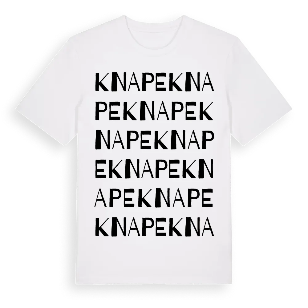 Knape ordlek t-shirt är inspirerad av Knape i Västra Götalands län, Sverige. Tröjan är designad för dig som har en speciell koppling till platsen – oavsett om du bor här, har rötterna här eller bara älskar Knape.