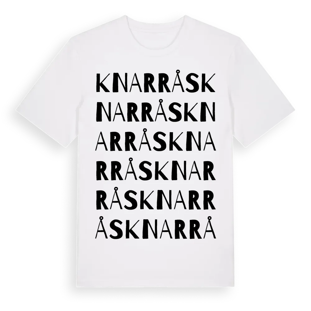 Knarrås ordlek t-shirt är inspirerad av Knarrås i Västra Götalands län, Sverige. Tröjan är designad för dig som har en speciell koppling till platsen – oavsett om du bor här, har rötterna här eller bara älskar Knarrås.