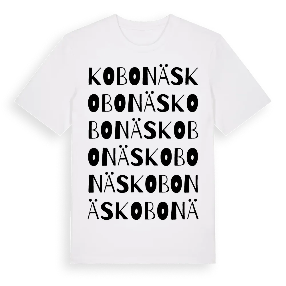 Kobonäs ordlek t-shirt är inspirerad av Kobonäs i Västra Götalands län, Sverige. Tröjan är designad för dig som har en speciell koppling till platsen – oavsett om du bor här, har rötterna här eller bara älskar Kobonäs.