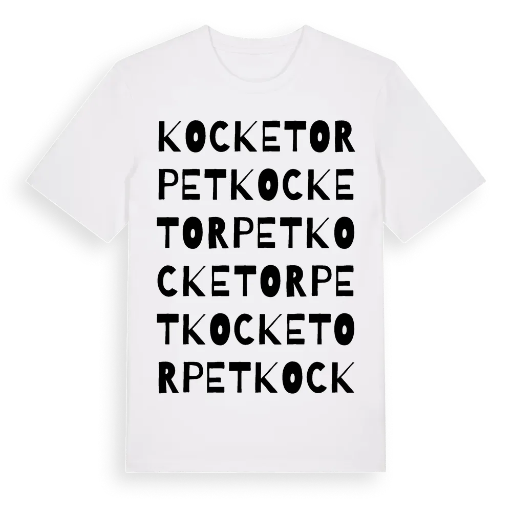 Kocketorpet ordlek t-shirt är inspirerad av Kocketorpet i Västra Götalands län, Sverige. Tröjan är designad för dig som har en speciell koppling till platsen – oavsett om du bor här, har rötterna här eller bara älskar Kocketorpet.