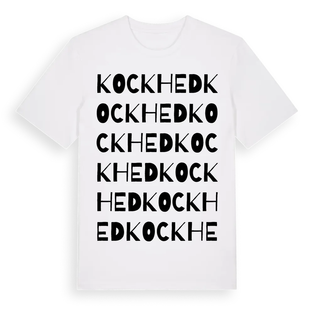 Kockhed ordlek t-shirt är inspirerad av byn Kockhed i Västra Götalands län, Sverige. Tröjan är designad för dig som har en speciell koppling till platsen – oavsett om du bor här, har rötterna här eller bara älskar Kockhed.