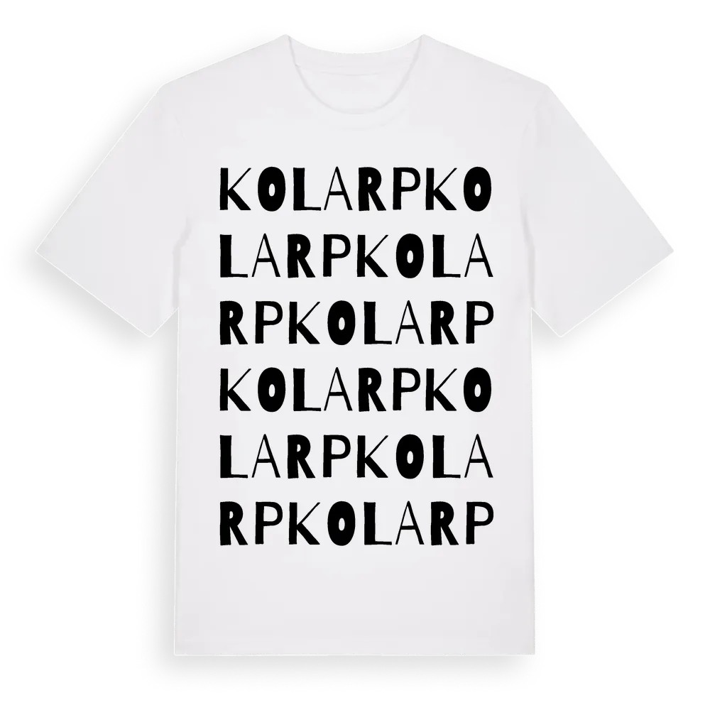 Kolarp ordlek t-shirt är inspirerad av byn Kolarp i Västra Götalands län, Sverige. Tröjan är designad för dig som har en speciell koppling till platsen – oavsett om du bor här, har rötterna här eller bara älskar Kolarp.