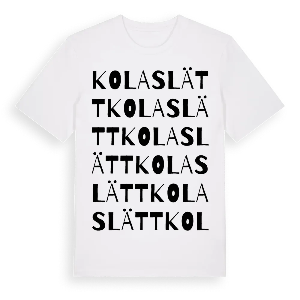 Kolaslätt ordlek t-shirt är inspirerad av Kolaslätt i Västra Götalands län, Sverige. Tröjan är designad för dig som har en speciell koppling till platsen – oavsett om du bor här, har rötterna här eller bara älskar Kolaslätt.