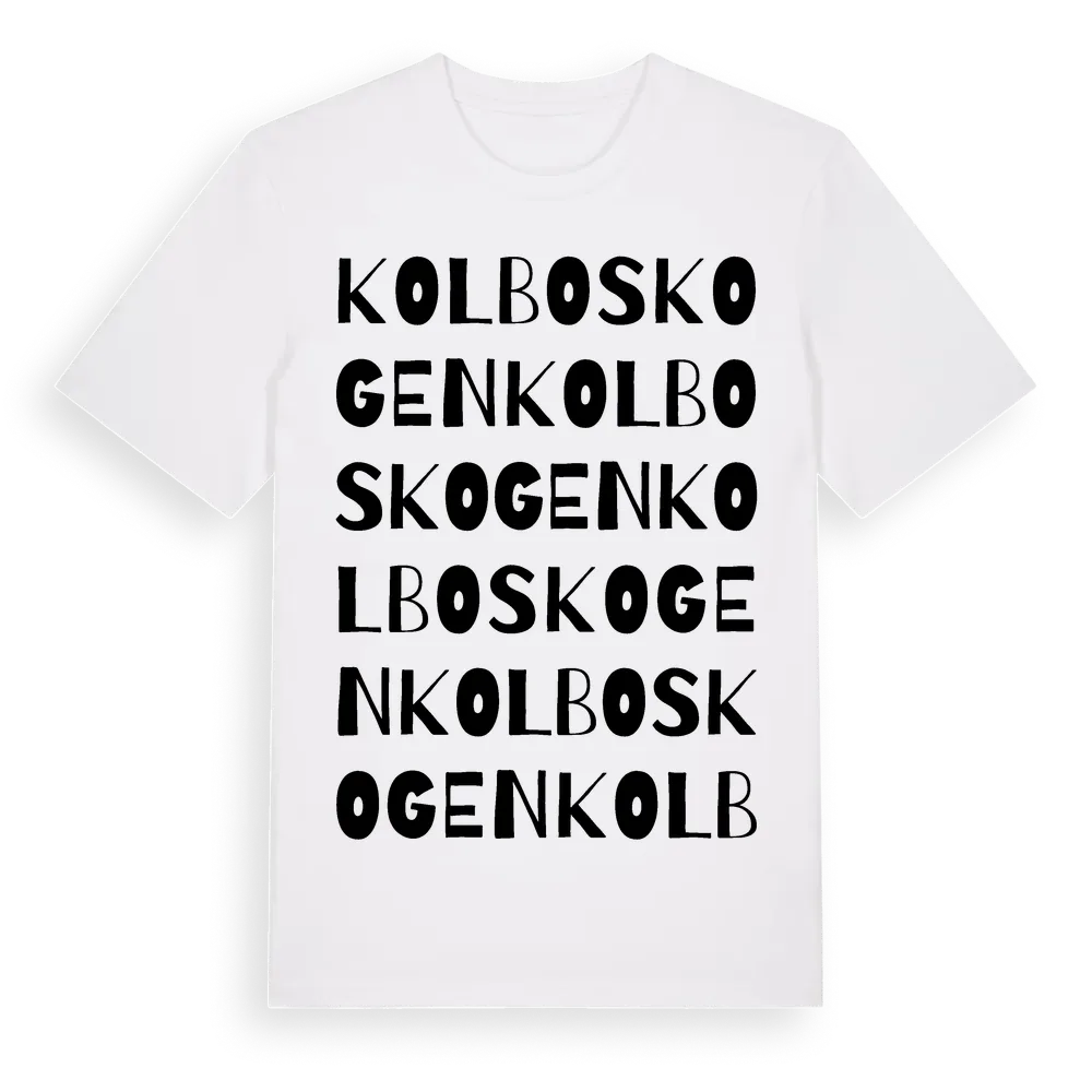 Kolboskogen ordlek t-shirt är inspirerad av Kolboskogen i Västra Götalands län, Sverige. Tröjan är designad för dig som har en speciell koppling till platsen – oavsett om du bor här, har rötterna här eller bara älskar Kolboskogen.