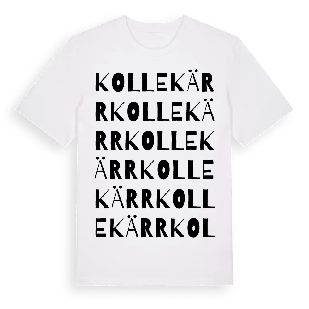 Kollekärr ordlek t-shirt är inspirerad av Kollekärr i Västra Götalands län, Sverige. Tröjan är designad för dig som har en speciell koppling till platsen – oavsett om du bor här, har rötterna här eller bara älskar Kollekärr.
