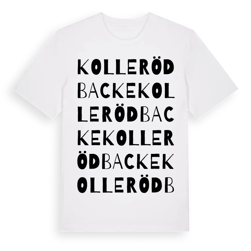 Kolleröd Backe ordlek t-shirt är inspirerad av byn Kolleröd Backe i Västra Götalands län, Sverige. Tröjan är designad för dig som har en speciell koppling till platsen – oavsett om du bor här, har rötterna här eller bara älskar Kolleröd Backe.