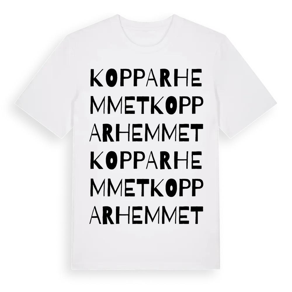 Kopparhemmet ordlek t-shirt är inspirerad av Kopparhemmet i Västra Götalands län, Sverige. Tröjan är designad för dig som har en speciell koppling till platsen – oavsett om du bor här, har rötterna här eller bara älskar Kopparhemmet.