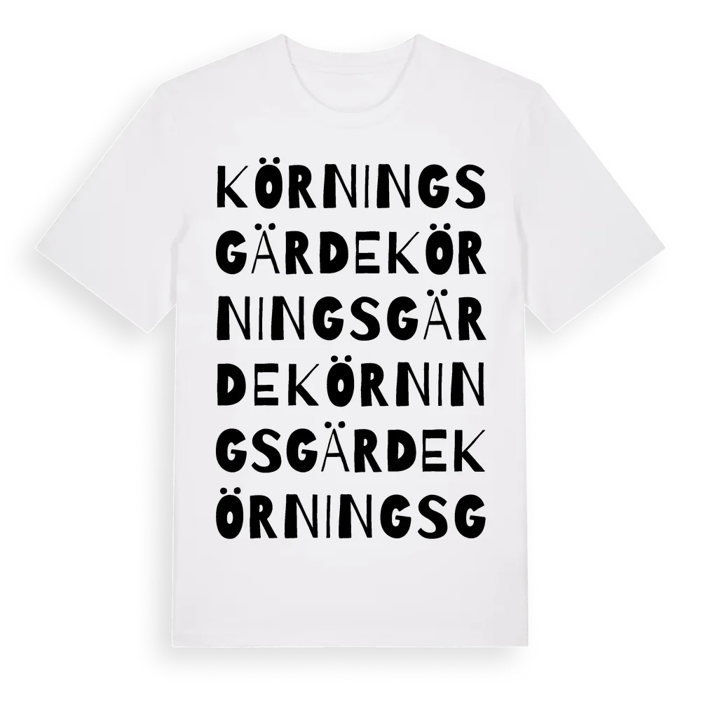 Körningsgärde ordlek t-shirt är inspirerad av byn Körningsgärde i Västra Götalands län, Sverige. Tröjan är designad för dig som har en speciell koppling till platsen – oavsett om du bor här, har rötterna här eller bara älskar Körningsgärde.