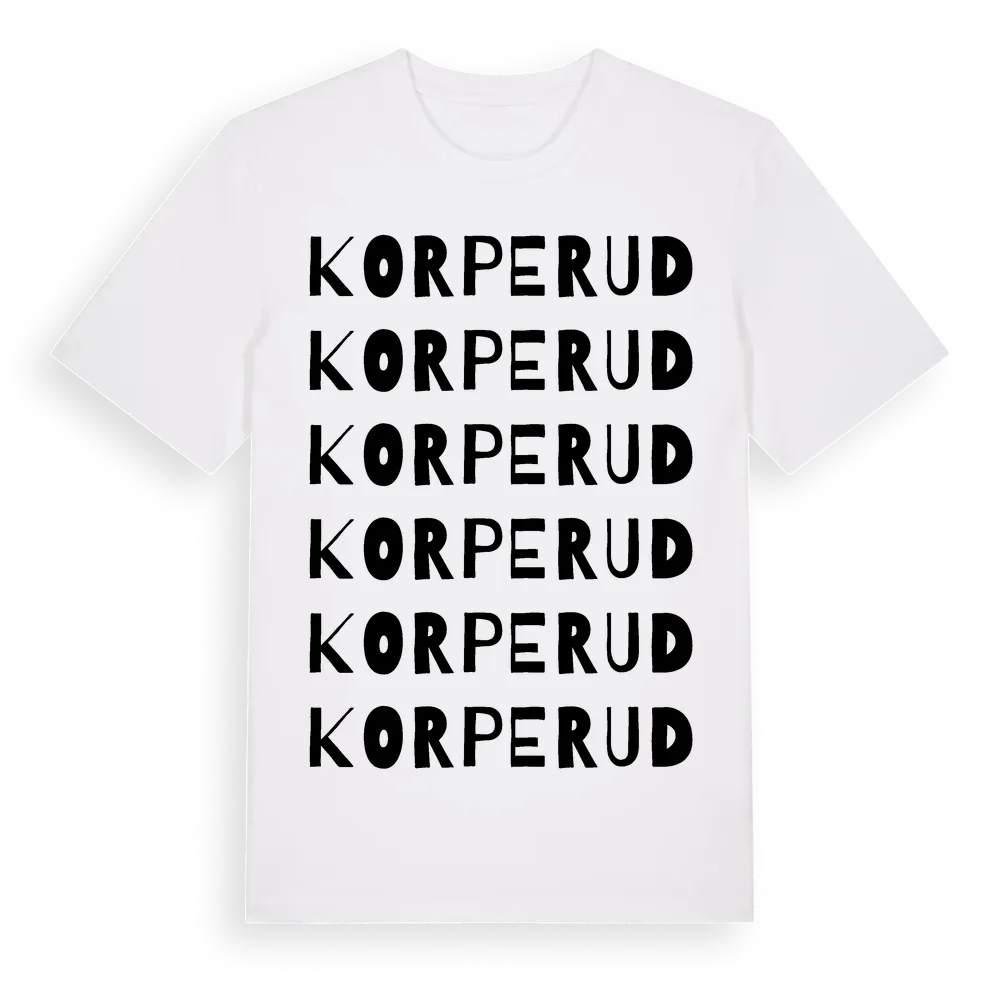Korperud ordlek t-shirt är inspirerad av Korperud i Västra Götalands län, Sverige. Tröjan är designad för dig som har en speciell koppling till platsen – oavsett om du bor här, har rötterna här eller bara älskar Korperud.