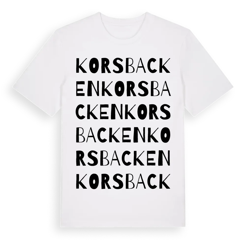 Korsbacken ordlek t-shirt är inspirerad av Korsbacken i Västra Götalands län, Sverige. Tröjan är designad för dig som har en speciell koppling till platsen – oavsett om du bor här, har rötterna här eller bara älskar Korsbacken.
