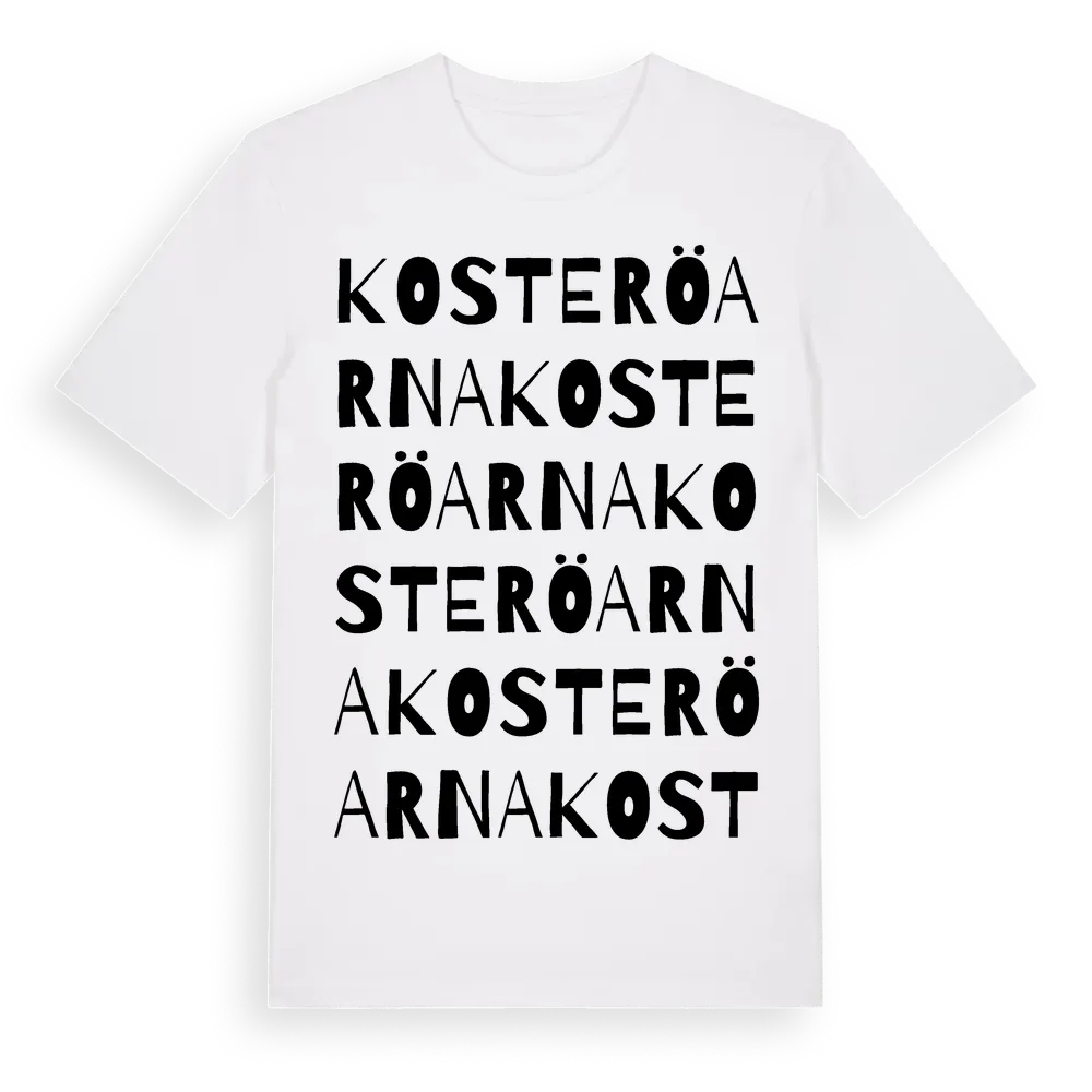 En ordlek byggd på Kosteröarnas namn. Subtilt och klurig – ett motiv som bara de som verkligen känner platsen fullt ut förstår. Premium bomull, unisex – från Kosteröarna i Västra Götalands län.