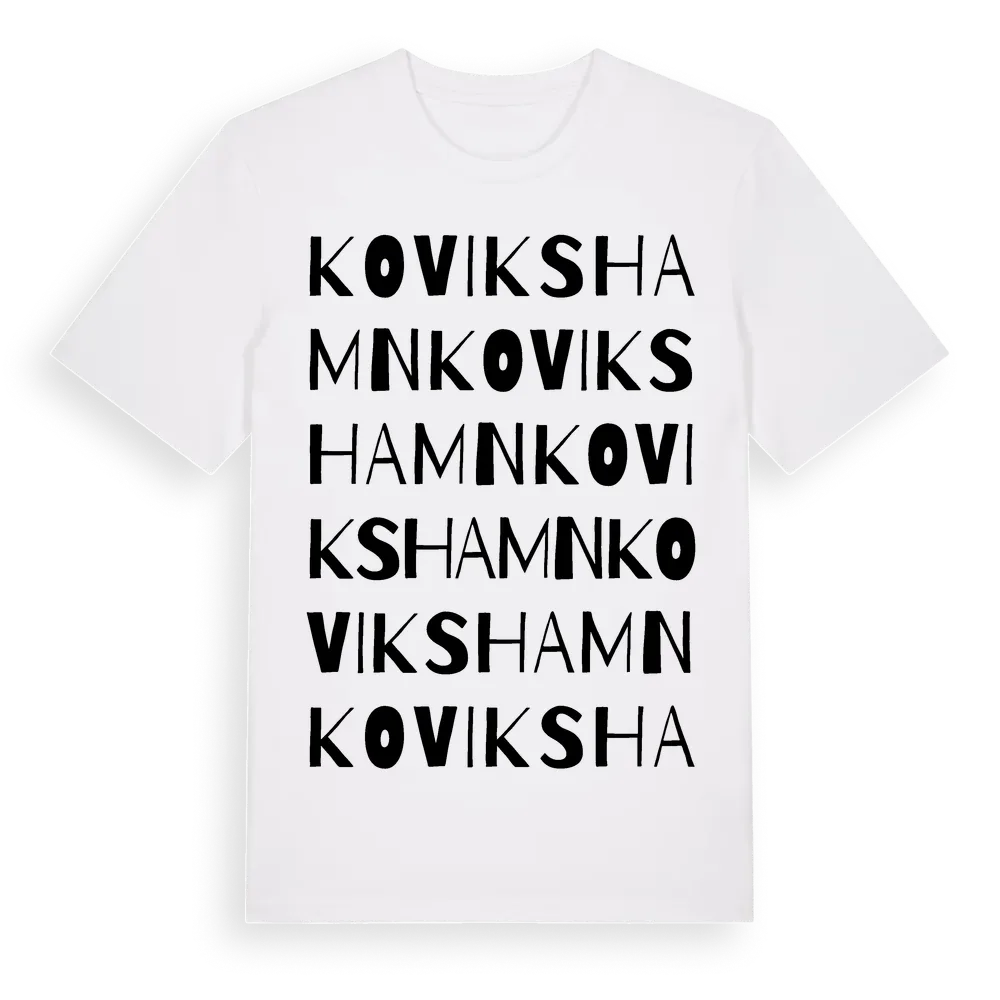 Kovikshamn ordlek t-shirt är inspirerad av byn Kovikshamn i Västra Götalands län, Sverige. Tröjan är designad för dig som har en speciell koppling till platsen – oavsett om du bor här, har rötterna här eller bara älskar Kovikshamn.
