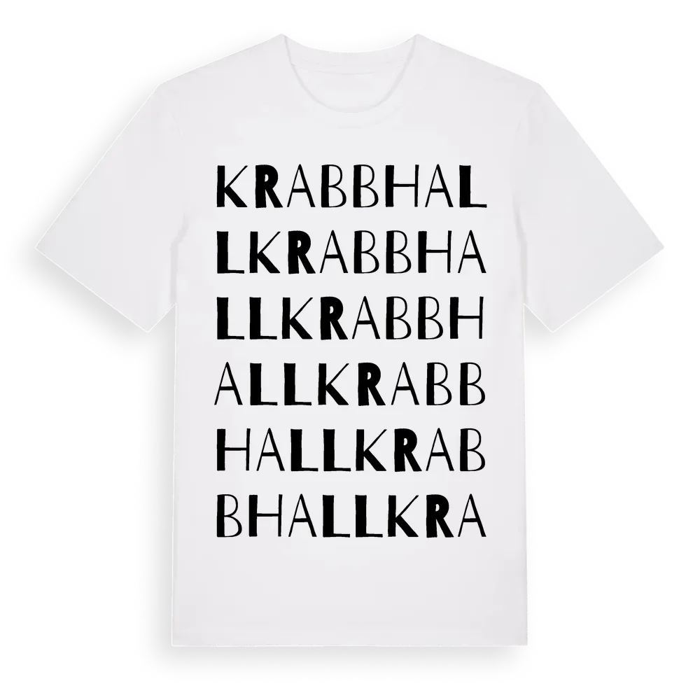 Krabbhall ordlek t-shirt är inspirerad av Krabbhall i Västra Götalands län, Sverige. Tröjan är designad för dig som har en speciell koppling till platsen – oavsett om du bor här, har rötterna här eller bara älskar Krabbhall.