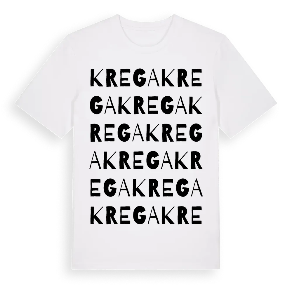 Krega ordlek t-shirt är inspirerad av Krega i Västra Götalands län, Sverige. Tröjan är designad för dig som har en speciell koppling till platsen – oavsett om du bor här, har rötterna här eller bara älskar Krega.