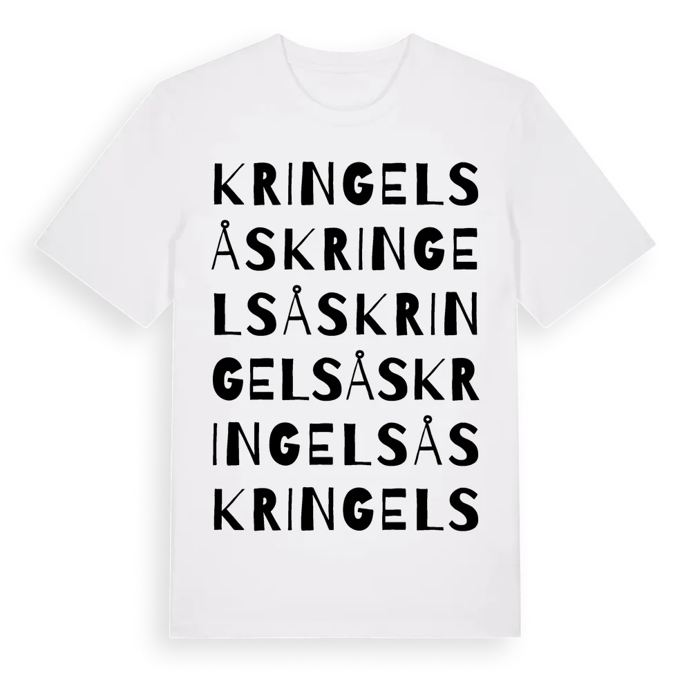 Kringelsås ordlek t-shirt är inspirerad av Kringelsås i Västra Götalands län, Sverige. Tröjan är designad för dig som har en speciell koppling till platsen – oavsett om du bor här, har rötterna här eller bara älskar Kringelsås.