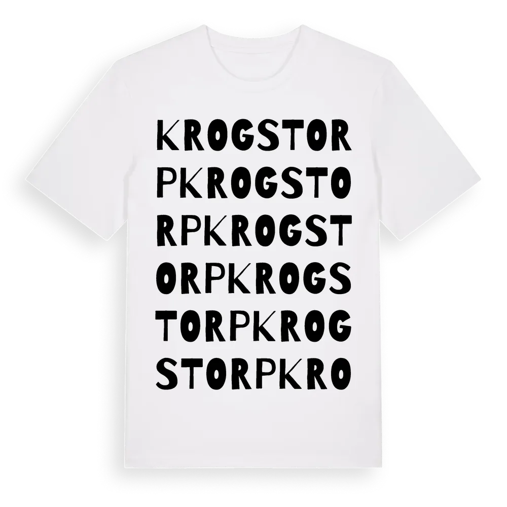 Krogstorp ordlek t-shirt är inspirerad av byn Krogstorp i Västra Götalands län, Sverige. Tröjan är designad för dig som har en speciell koppling till platsen – oavsett om du bor här, har rötterna här eller bara älskar Krogstorp.