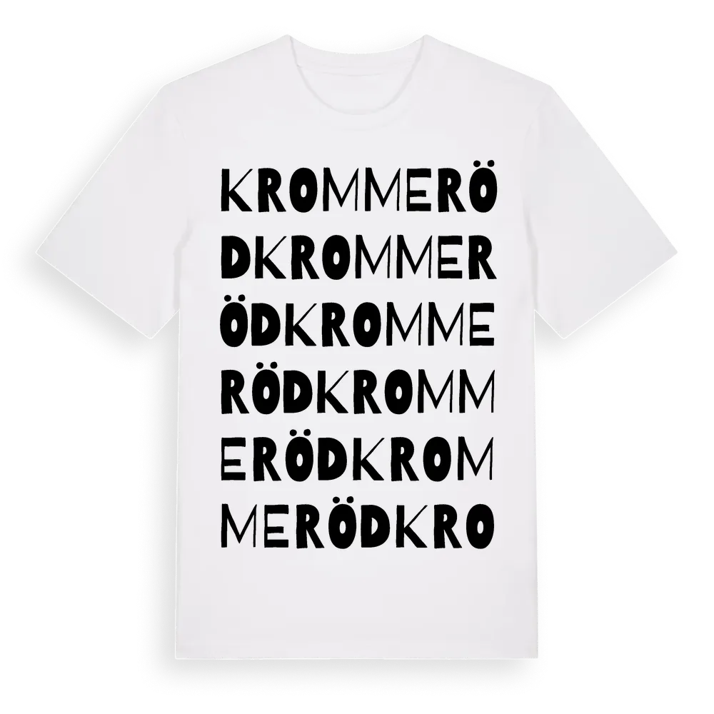Krommeröd ordlek t-shirt är inspirerad av byn Krommeröd i Västra Götalands län, Sverige. Tröjan är designad för dig som har en speciell koppling till platsen – oavsett om du bor här, har rötterna här eller bara älskar Krommeröd.