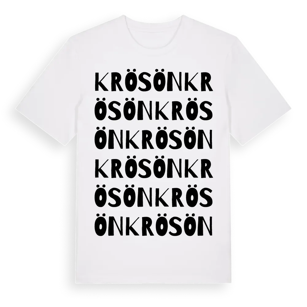 En ordlek byggd på Krösöns namn. Subtilt och klurig – ett motiv som bara de som verkligen känner platsen fullt ut förstår. Premium bomull, unisex – från ön Krösön i Västra Götalands län.