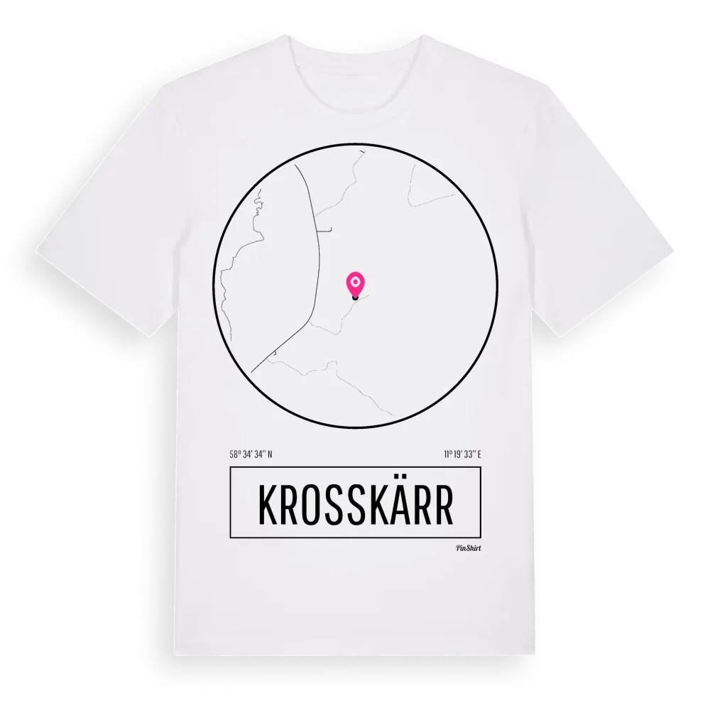 Krosskärr t-shirt är inspirerad av stadsdelen Krosskärr i Västra Götalands län, Sverige. Tröjan är designad för dig som har en speciell koppling till platsen – oavsett om du bor här, har rötterna här eller bara älskar Krosskärr.