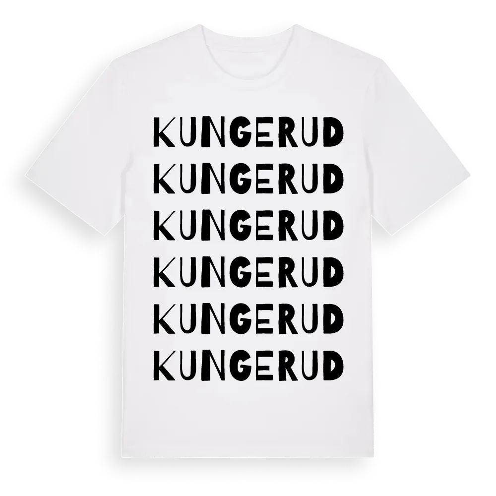 Kungerud ordlek t-shirt är inspirerad av Kungerud i Västra Götalands län, Sverige. Tröjan är designad för dig som har en speciell koppling till platsen – oavsett om du bor här, har rötterna här eller bara älskar Kungerud.