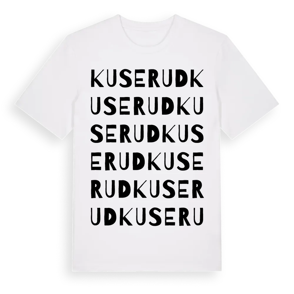 Kuserud ordlek t-shirt är inspirerad av Kuserud i Västra Götalands län, Sverige. Tröjan är designad för dig som har en speciell koppling till platsen – oavsett om du bor här, har rötterna här eller bara älskar Kuserud.