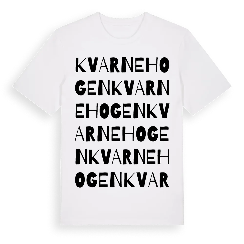 Kvarnehogen ordlek t-shirt är inspirerad av Kvarnehogen i Västra Götalands län, Sverige. Tröjan är designad för dig som har en speciell koppling till platsen – oavsett om du bor här, har rötterna här eller bara älskar Kvarnehogen.
