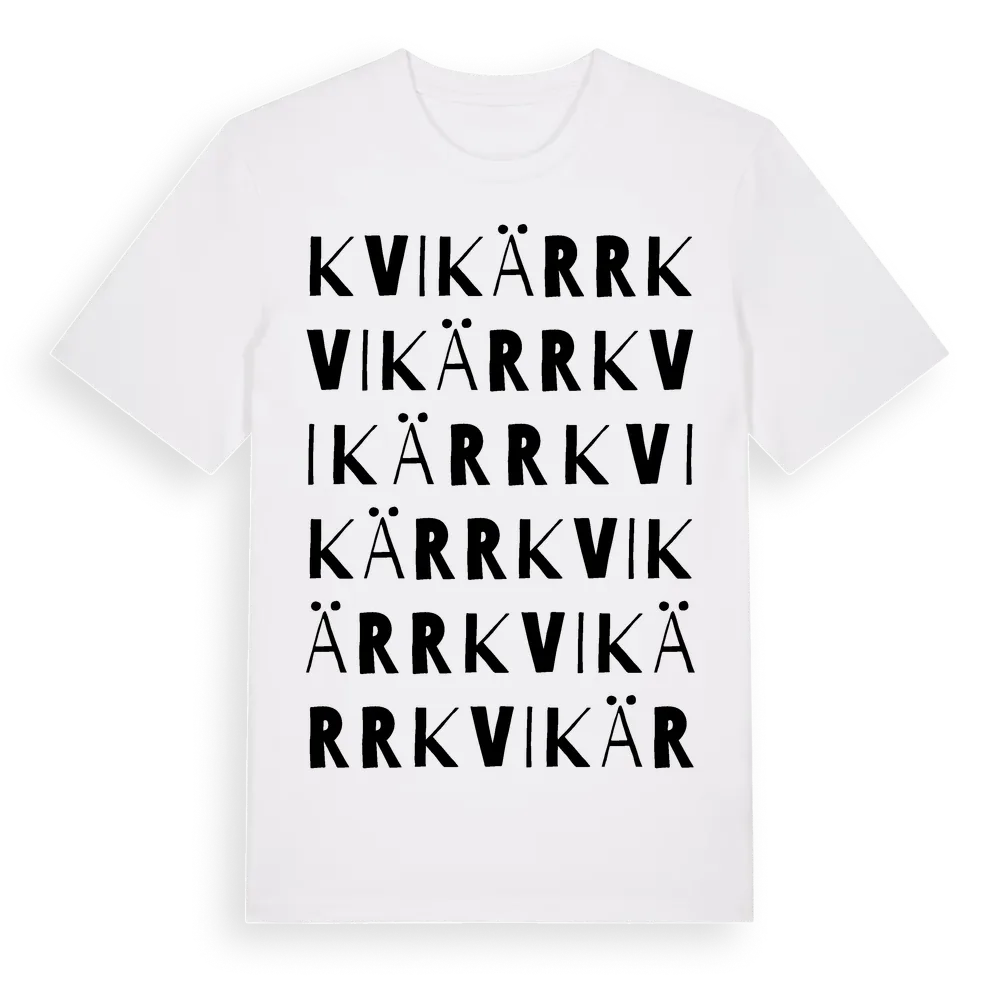 Kvikärr ordlek t-shirt är inspirerad av Kvikärr i Västra Götalands län, Sverige. Tröjan är designad för dig som har en speciell koppling till platsen – oavsett om du bor här, har rötterna här eller bara älskar Kvikärr.