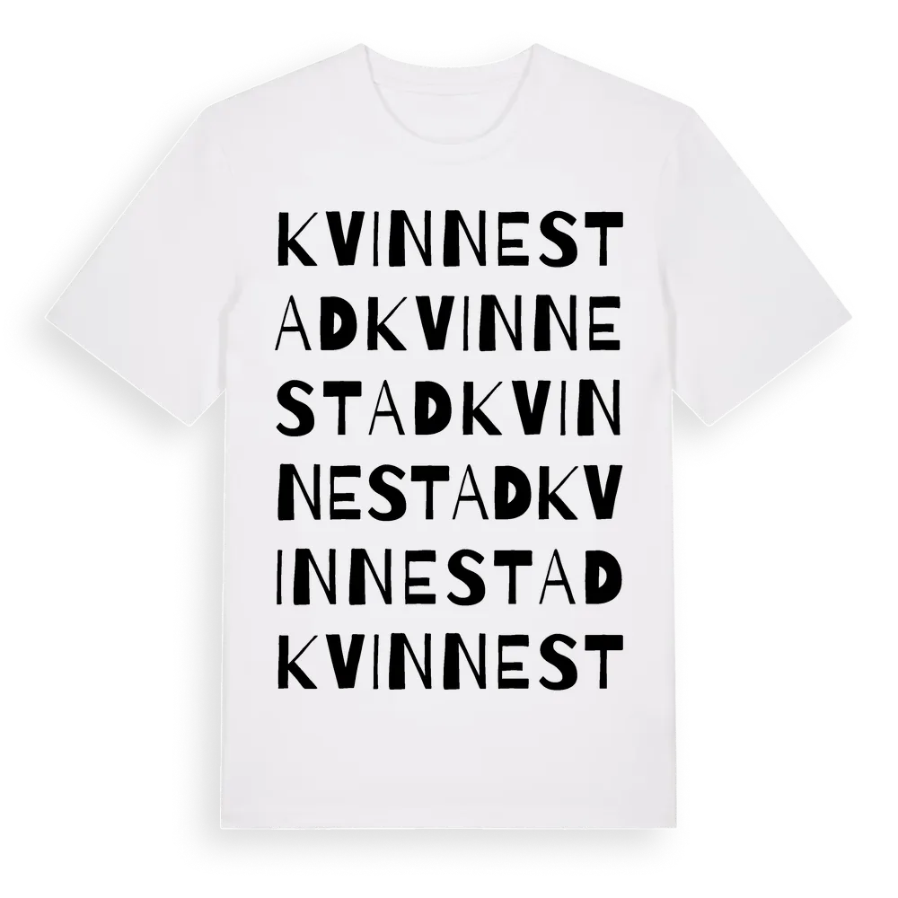 Kvinnestad ordlek t-shirt är inspirerad av byn Kvinnestad i Västra Götalands län, Sverige. Tröjan är designad för dig som har en speciell koppling till platsen – oavsett om du bor här, har rötterna här eller bara älskar Kvinnestad.