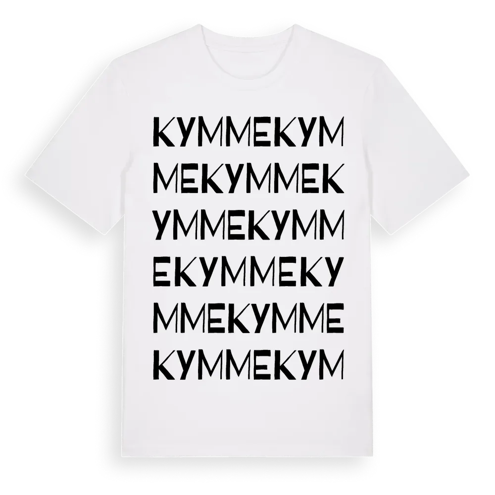 En ordlek byggd på Kymmes namn. Subtilt och klurig – ett motiv som bara de som verkligen känner platsen fullt ut förstår. Premium bomull, unisex – från Kymme i Västra Götalands län.