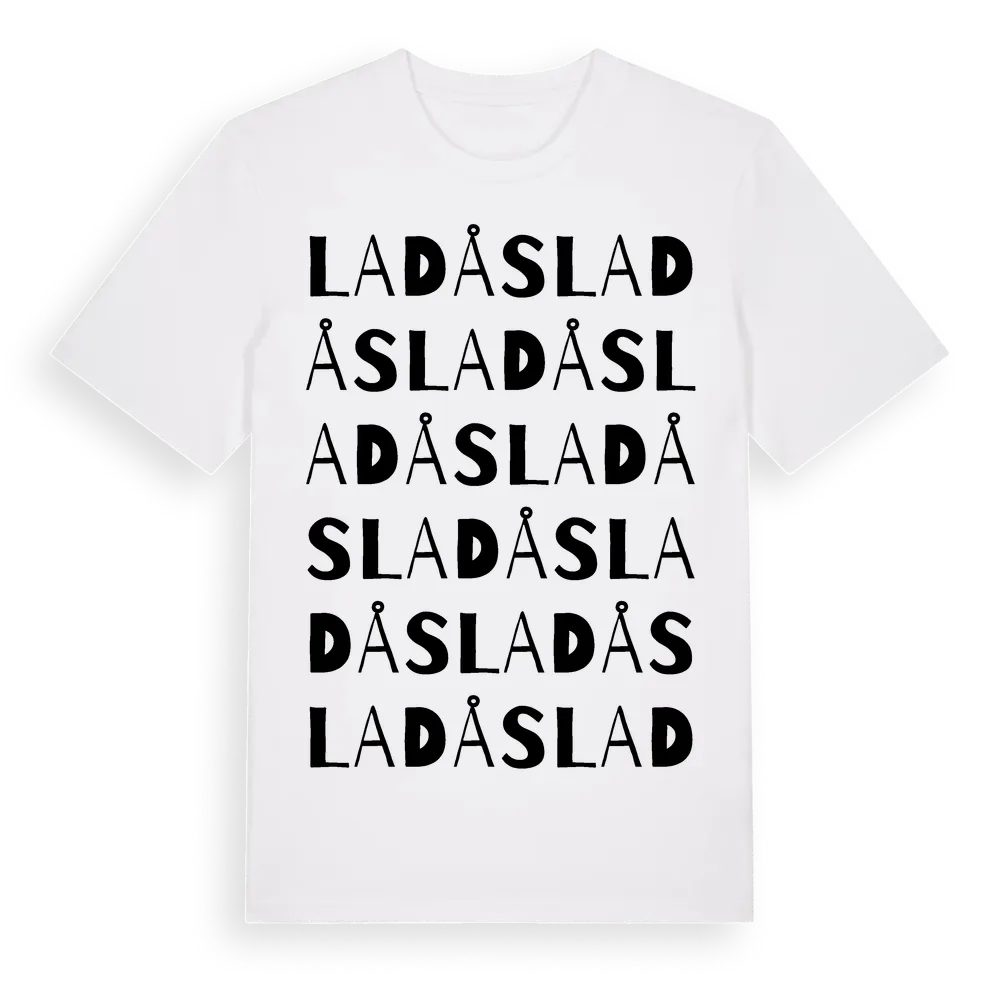 Ladås ordlek t-shirt är inspirerad av Ladås i Västra Götalands län, Sverige. Tröjan är designad för dig som har en speciell koppling till platsen – oavsett om du bor här, har rötterna här eller bara älskar Ladås.