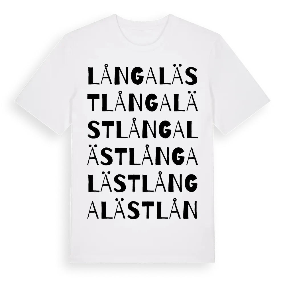 Långaläst ordlek t-shirt är inspirerad av byn Långaläst i Västra Götalands län, Sverige. Tröjan är designad för dig som har en speciell koppling till platsen – oavsett om du bor här, har rötterna här eller bara älskar Långaläst.