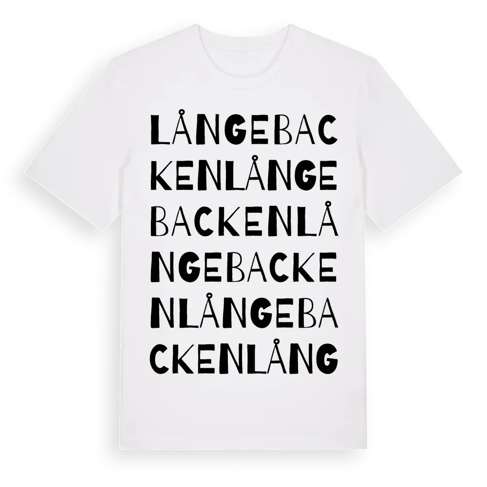 Långebacken ordlek t-shirt är inspirerad av Långebacken i Västra Götalands län, Sverige. Tröjan är designad för dig som har en speciell koppling till platsen – oavsett om du bor här, har rötterna här eller bara älskar Långebacken.
