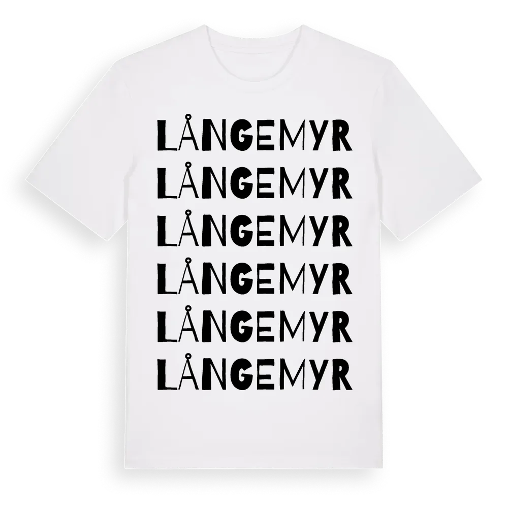 Långemyr ordlek t-shirt är inspirerad av Långemyr i Västra Götalands län, Sverige. Tröjan är designad för dig som har en speciell koppling till platsen – oavsett om du bor här, har rötterna här eller bara älskar Långemyr.