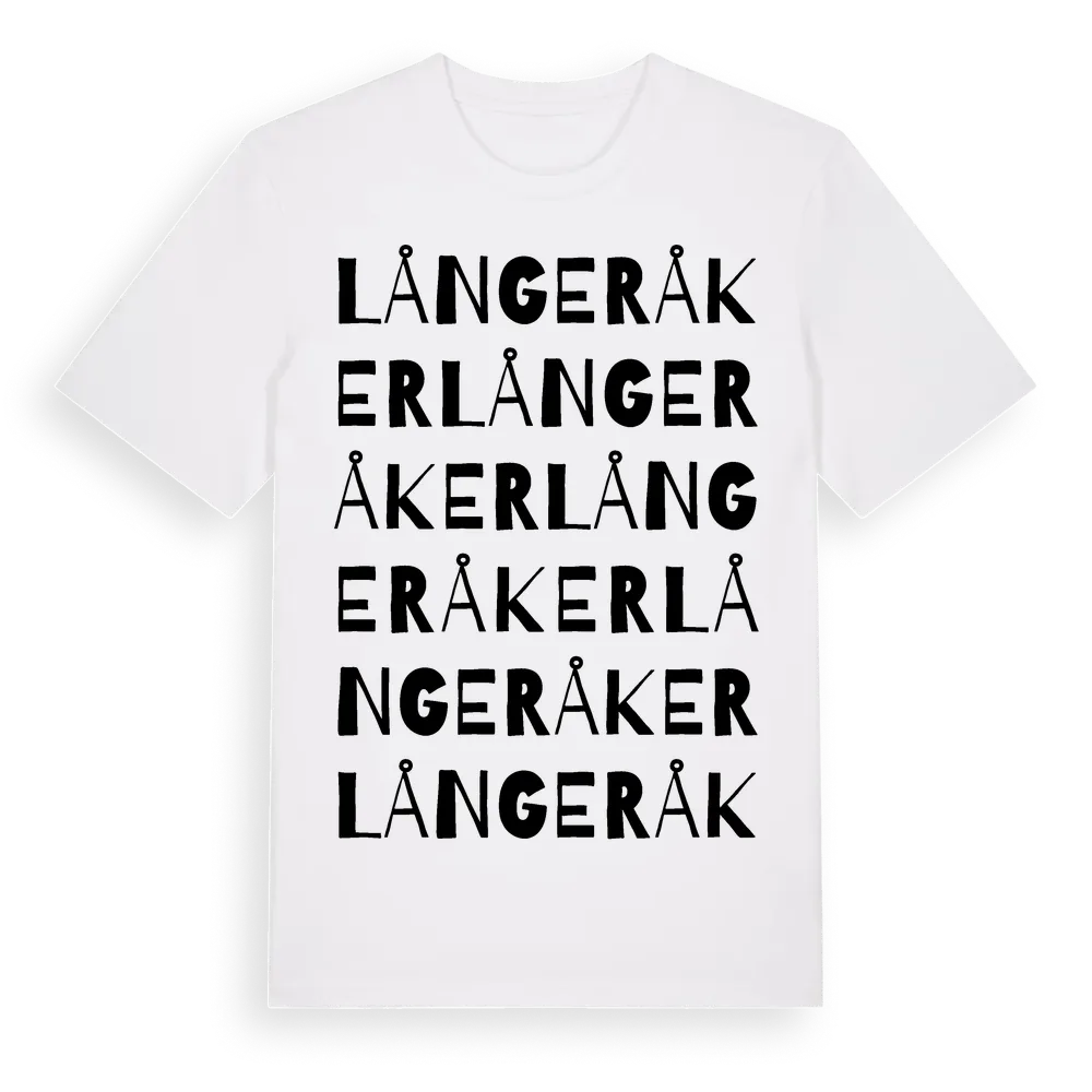 Långeråker ordlek t-shirt är inspirerad av byn Långeråker i Västra Götalands län, Sverige. Tröjan är designad för dig som har en speciell koppling till platsen – oavsett om du bor här, har rötterna här eller bara älskar Långeråker.
