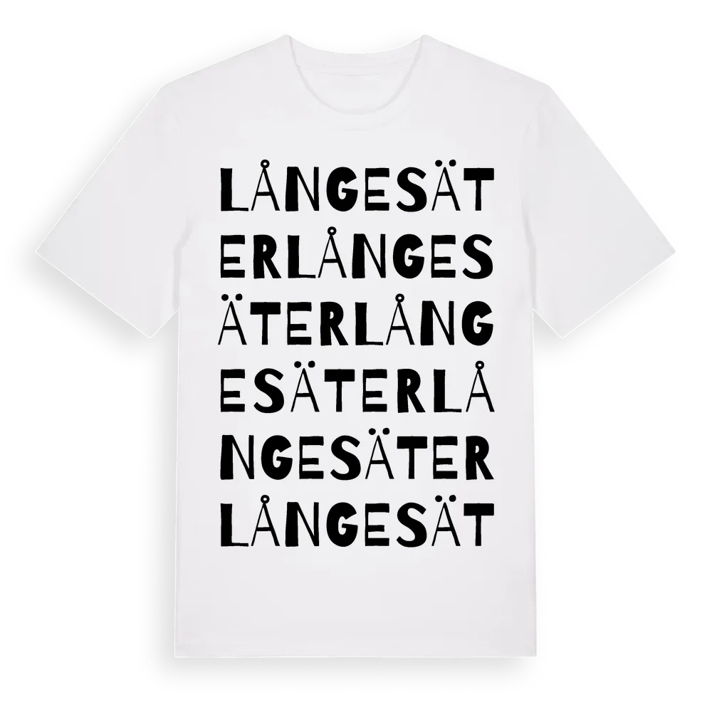 Långesäter ordlek t-shirt är inspirerad av byn Långesäter i Västra Götalands län, Sverige. Tröjan är designad för dig som har en speciell koppling till platsen – oavsett om du bor här, har rötterna här eller bara älskar Långesäter.