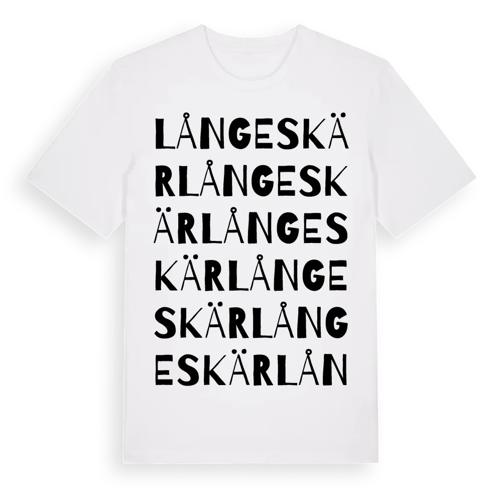Långeskär ordlek t-shirt är inspirerad av ön Långeskär i Västra Götalands län, Sverige. Tröjan är designad för dig som har en speciell koppling till platsen – oavsett om du bor här, har rötterna här eller bara älskar Långeskär.