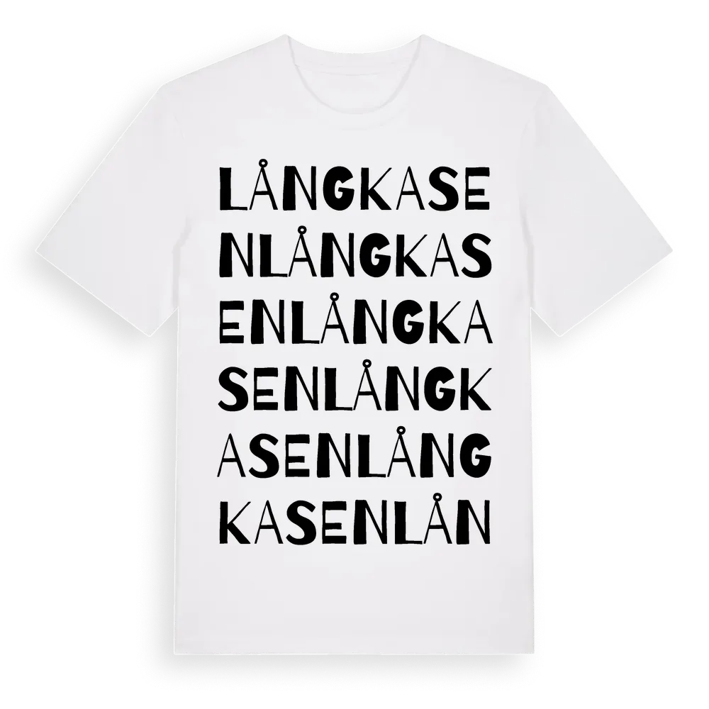 Långkasen ordlek t-shirt är inspirerad av Långkasen i Västra Götalands län, Sverige. Tröjan är designad för dig som har en speciell koppling till platsen – oavsett om du bor här, har rötterna här eller bara älskar Långkasen.