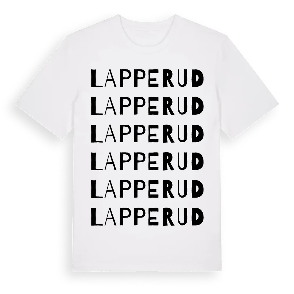 Lapperud ordlek t-shirt är inspirerad av Lapperud i Västra Götalands län, Sverige. Tröjan är designad för dig som har en speciell koppling till platsen – oavsett om du bor här, har rötterna här eller bara älskar Lapperud.