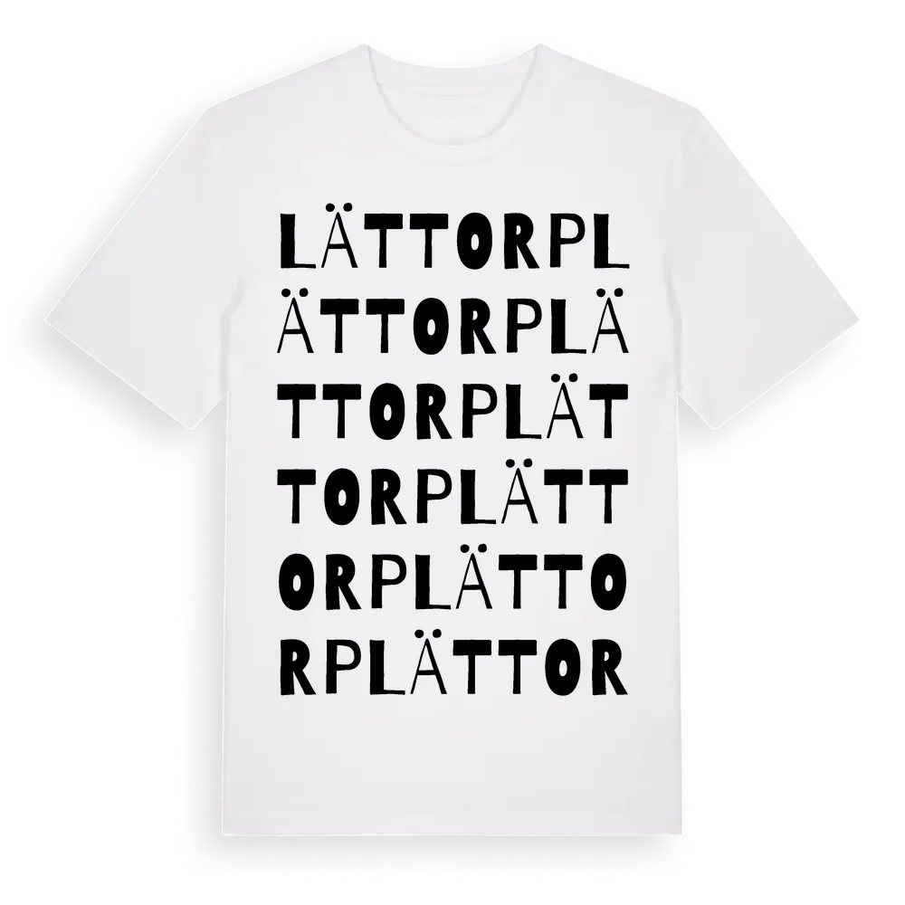 Lättorp ordlek t-shirt är inspirerad av Lättorp i Västra Götalands län, Sverige. Tröjan är designad för dig som har en speciell koppling till platsen – oavsett om du bor här, har rötterna här eller bara älskar Lättorp.