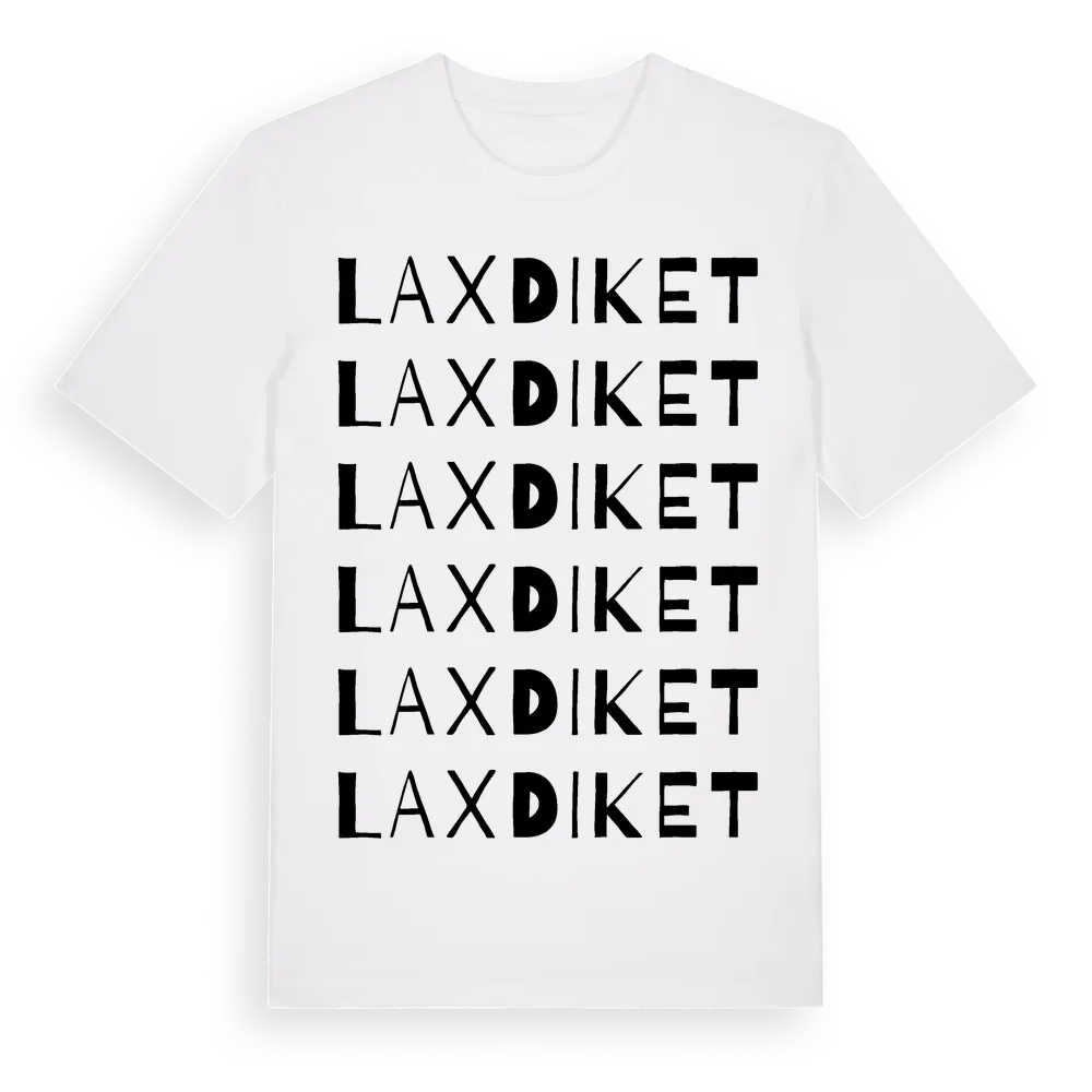Laxdiket ordlek t-shirt är inspirerad av Laxdiket i Västra Götalands län, Sverige. Tröjan är designad för dig som har en speciell koppling till platsen – oavsett om du bor här, har rötterna här eller bara älskar Laxdiket.