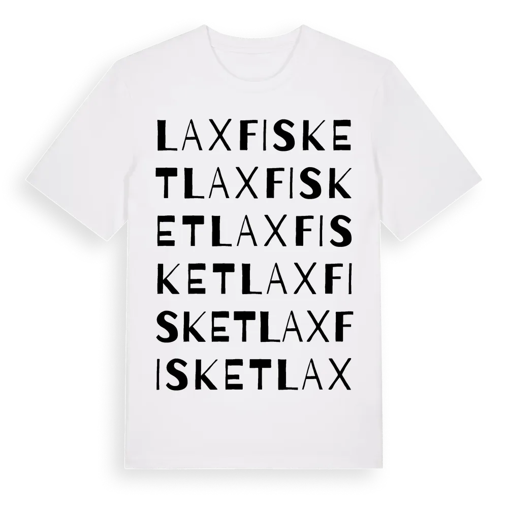 Laxfisket ordlek t-shirt är inspirerad av Laxfisket i Västra Götalands län, Sverige. Tröjan är designad för dig som har en speciell koppling till platsen – oavsett om du bor här, har rötterna här eller bara älskar Laxfisket.