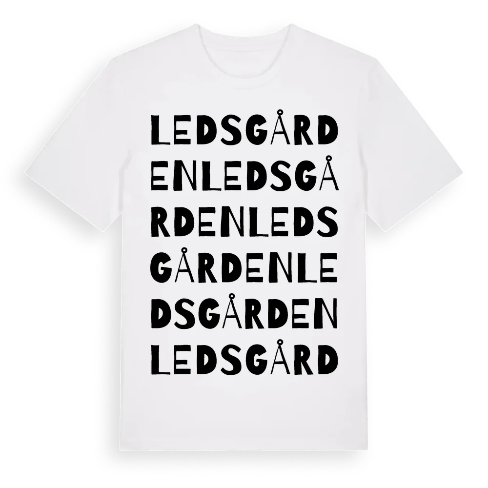 Ledsgården ordlek t-shirt är inspirerad av Ledsgården i Västra Götalands län, Sverige. Tröjan är designad för dig som har en speciell koppling till platsen – oavsett om du bor här, har rötterna här eller bara älskar Ledsgården.
