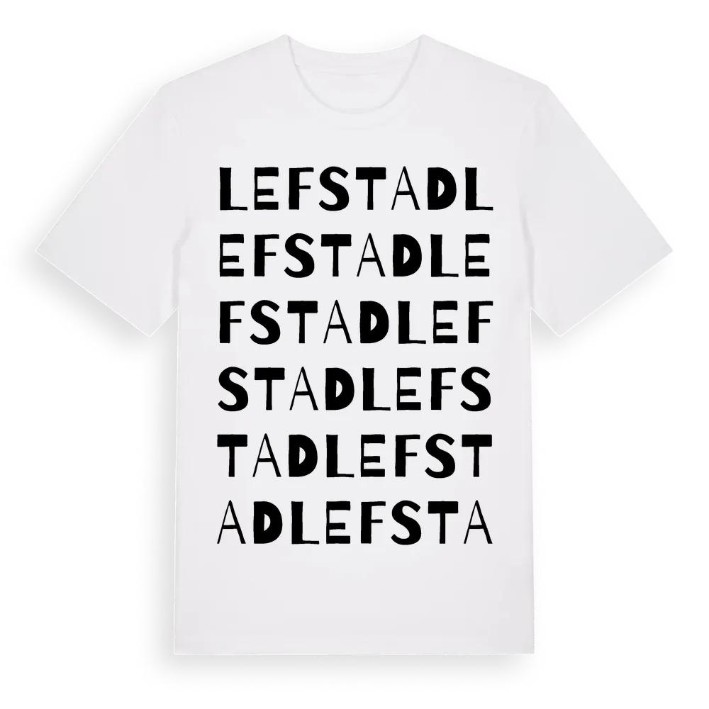Lefstad ordlek t-shirt är inspirerad av byn Lefstad i Västra Götalands län, Sverige. Tröjan är designad för dig som har en speciell koppling till platsen – oavsett om du bor här, har rötterna här eller bara älskar Lefstad.